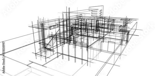 Fototapeta premium building sketch architectural 3d illustration