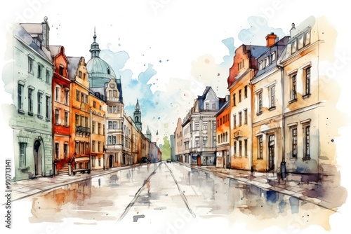 © Rawpixel.com, Fototapeta premium Building street architecture painting.