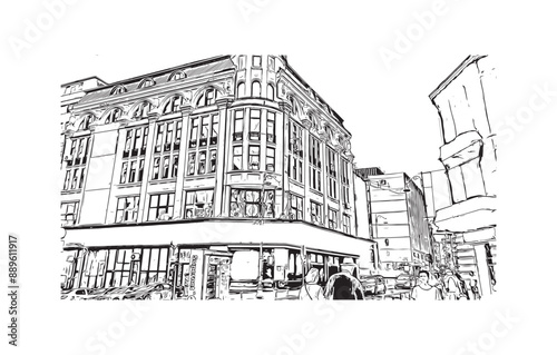 Fototapeta premium Building view with landmark of Bucharest Romanin. Hand drawn sketch...