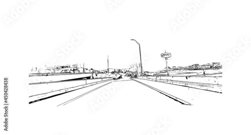 © dhanu3182, Obraz premium Building view with landmark of Johnson City is in east Tennessee. Hand drawn sketch illustration in vector.