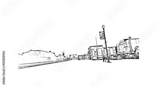 © dhanu3182, Obraz premium Building view with landmark of Johnson City is in east Tennessee. Hand drawn sketch illustration in vector.