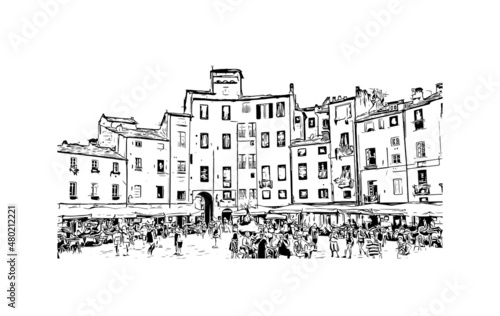 Obraz premium Building view with landmark of Lucca is the city in Italy. Hand drawn sketch...