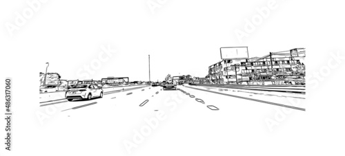 © dhanu3182, Obraz premium Building view with landmark of Medford is the city in Oregon. Hand drawn sketch illustration in vector.