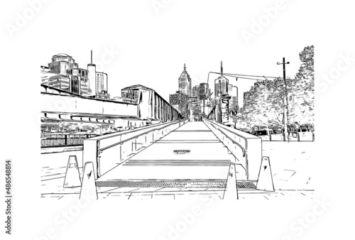 Fototapeta premium Building view with landmark of Melbourne is the city in Australia. Hand drawn sketch illustration in vector.