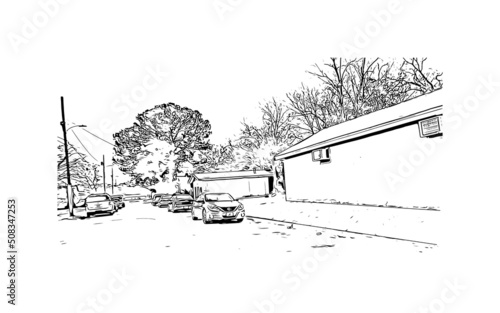 © dhanu3182, Fototapeta premium Building view with landmark of Montgomery is the city in Alabama. Hand drawn sketch illustration in vector.