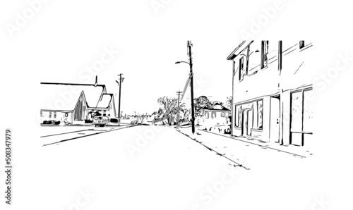 © dhanu3182, Fototapeta premium Building view with landmark of Montgomery is the city in Alabama. Hand drawn sketch illustration in vector.