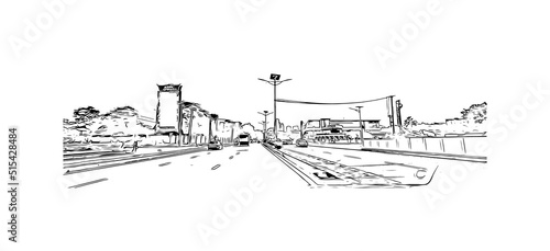 © dhanu3182, Obraz premium Building view with landmark of Nairobi is the capital of Kenya. Hand drawn sketch illustration in vector.