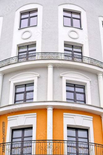 © Vidady, Fototapeta premium Building with Rounded Facade and Balustrade