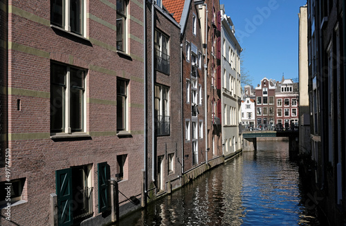 © lensw0rld, Fototapeta premium Buildings along a canal in Amsterdam
