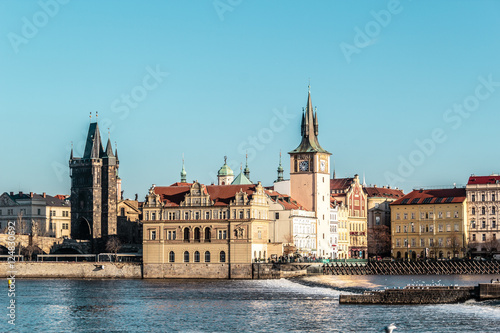 Naklejka premium Buildings and Streets near Vltava River in Prague, Czech Republi