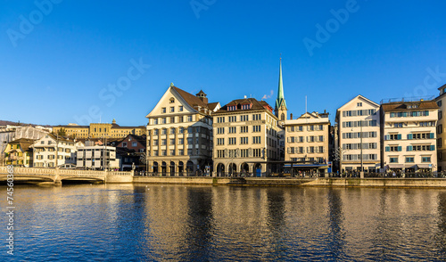 © Leonid Andronov, Fototapeta premium Buildings at the embankment of Zurich - Switzerland