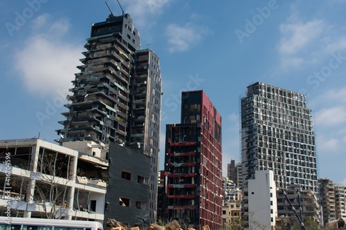 © Erich, Fototapeta premium buildings at the modern part of Beirut after a massive explosion in August 2020