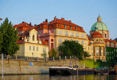 © niklas storm, Naklejka premium Buildings by the river against sky