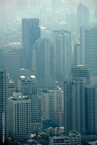 © Kevin, Obraz premium Buildings in Bangkok highlighting the pollution problem showing the smog on a relatively clear day. Part of a series of photos and videos of pollution and global warming issues.