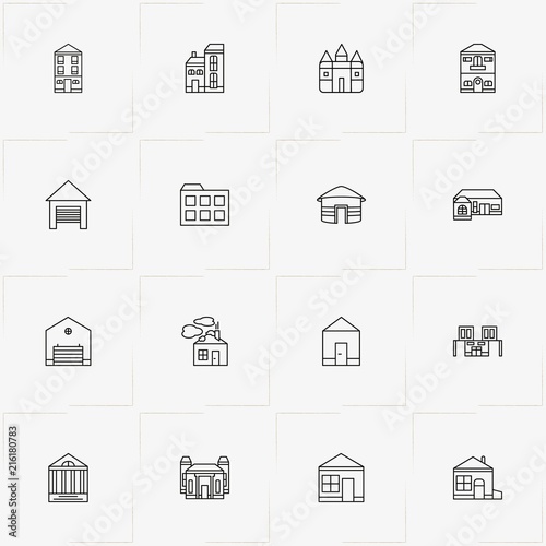 © Orkhan, Fototapeta premium Buildings line icon set with house, building and theater