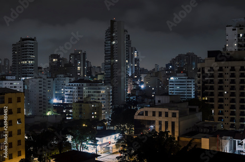 Fototapeta premium Buildings of Sao Paulo city at a cloudy night. Urban photo of the city during...