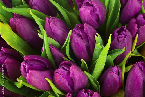 © GLandStudio, Fototapeta premium Bukiet fioletowych tulipanów do wykorzystania jako tło przyrody.