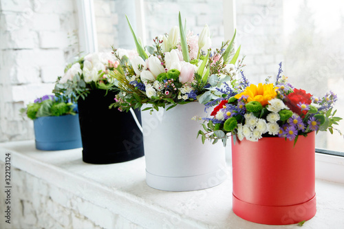 © Daryna , Fototapeta premium bukiet kolorowych kwiatów na stole