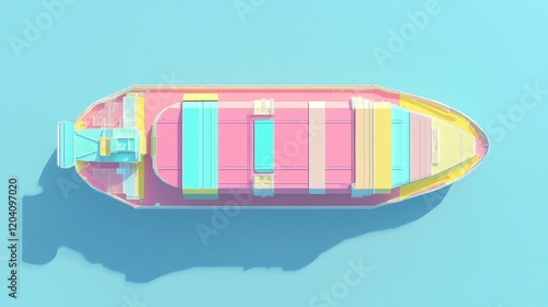 © MAGNIFIER, Obraz premium Bulk carrier flat design top view Container ship theme animation colored pastel