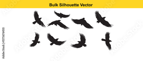 © SilhouetteStore, Naklejka premium Bulk Silhouette Vector of Flying Birds in Black on White Background