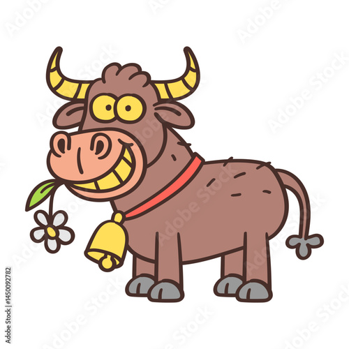 © yuriytsirkunov, Fototapeta premium Bull cartoon character standing and smiling
