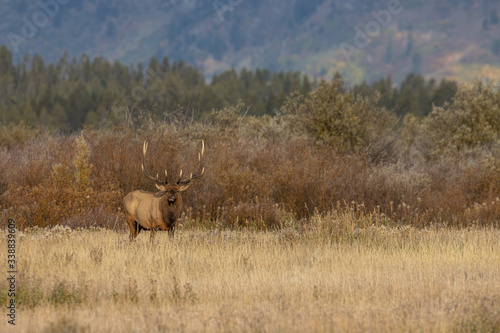 Fototapeta premium Bull Elk in Wyoming During the Rut in Autumn