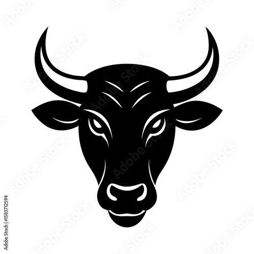 © Mamnur, Naklejka premium bull head logo in bold black vector style sharp
