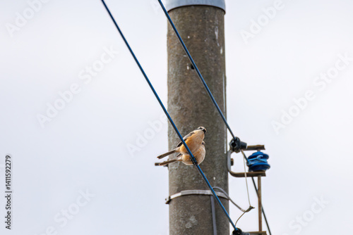 Fototapeta premium ペアで仲良くしている 美しいモズ(モズ科) 英名学名:Bull-headed shrike (Lanius bucephalus, family comprising shrike) 群馬県太田市利根川河川敷-2025年
