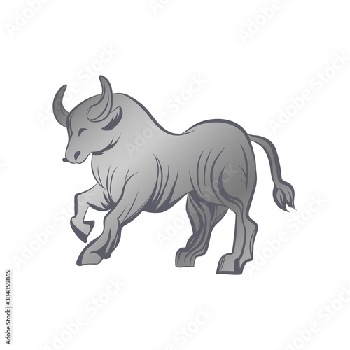 Fototapeta premium Bull running silhouette vector illustration. Silver ox isolated on white background.