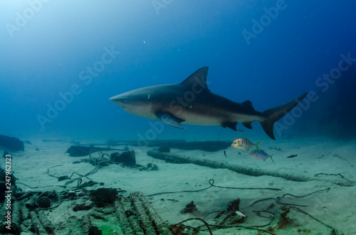 Obraz premium Bull Shark (Carcharhinus leucas). reefs of the Sea of Cortez, Pacific ocean....