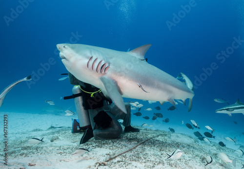 © wildestanimal, Fototapeta premium Bull shark during a shark feed dive, Playa del Carmen, Mexico.