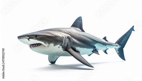 © Alper, Fototapeta premium Bull shark in full view on white studio background