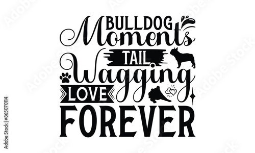 © Joy Artist, Naklejka premium Bulldog Moments Tail Wagging Love Forever - Bulldog T - Shirt Design, Isolated On White Background, Illustration For Prints And Bags, Posters, Cards, Calligraphy Graphic Design. EPS 10