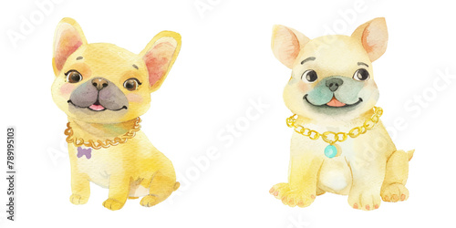 © Finkha, Obraz premium bulldog wearing gold chain watercolor vector illustration