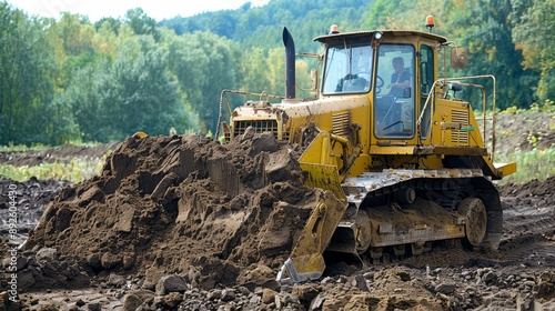 © AUAChanel, Fototapeta premium Bulldozer Digging in a Construction Site.