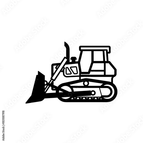 © Elena, Naklejka premium Bulldozer illustration in minimalist style on a transparent background for construction use