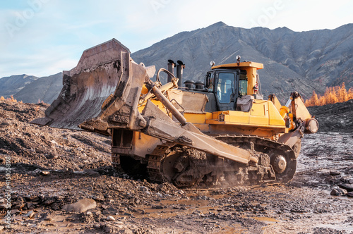 © Letopisec, Obraz premium Bulldozer in process of working in an industrial mountain area