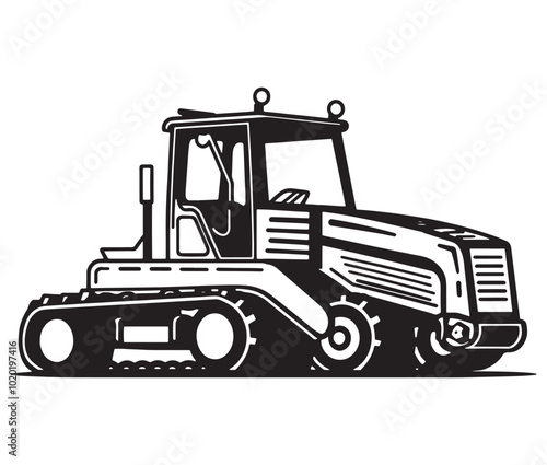 © Md.Riaz, Naklejka premium Bulldozer isolated on white, Tractor vector illustration, Silhouette bulldozer vector