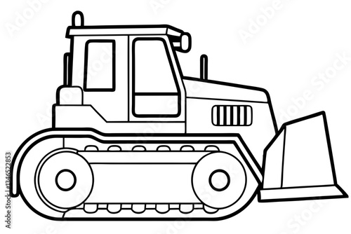 © Pinak, Naklejka premium bulldozer line art silhouette vector illustration