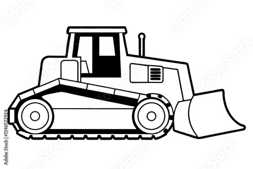 © Pinak, Naklejka premium bulldozer line art silhouette vector illustration