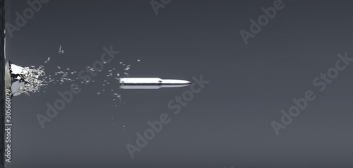 Fototapeta premium Bullet, shell flies through splash. 3d illustration render. Shooting from...