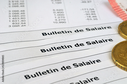 © Richard Villalon, Obraz premium Bulletins de salaire avec des euros en gros plan