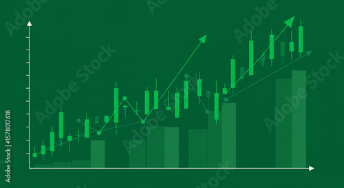 Fototapeta premium Bullish Green Stock Market Chart with Candlesticks and Upward Trend.