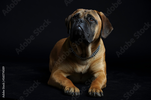 © Varga_photography, Fototapeta premium Bullmastiff dog in front of a black background in the studio.
