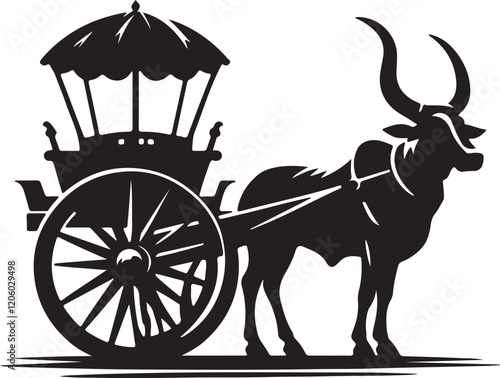 © Sabina, Fototapeta premium bullock cart silhouette victor design .