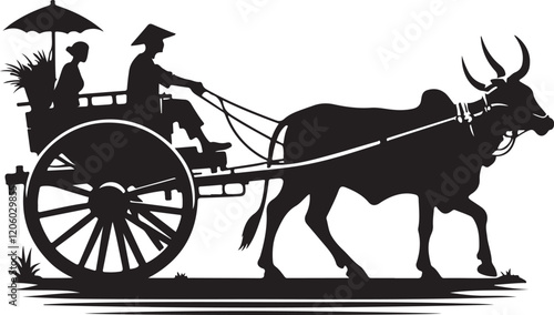© Sabina, Fototapeta premium bullock cart silhouette victor design .