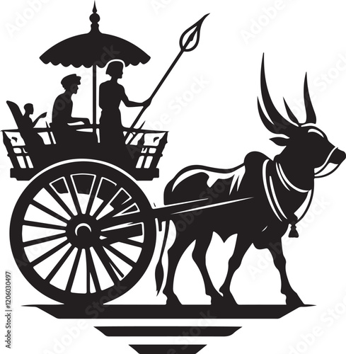© Sabina, Fototapeta premium bullock cart silhouette victor design .