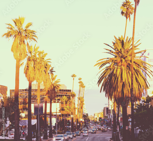 Obraz premium Bulwar Hollywood o zachodzie słońca