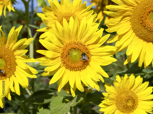 Fototapeta premium Bumble bee collects pollen on a sunflower