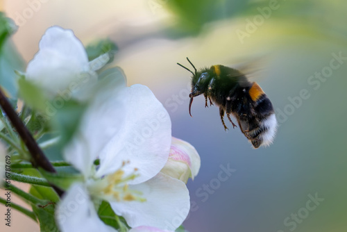 © zebronit, Naklejka premium bumble bee flying to flower, summer 2023
